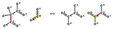 Above is a sample output from the web server. Atoms have been relabelled to match atom ids on the left side, broken (left) and formed (right) bonds are highlighted. One atom map pair is highlighted in yellow.